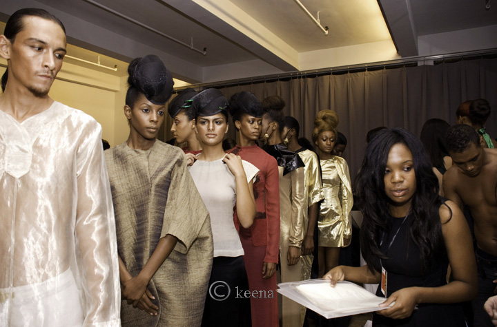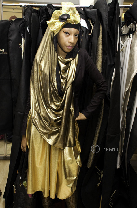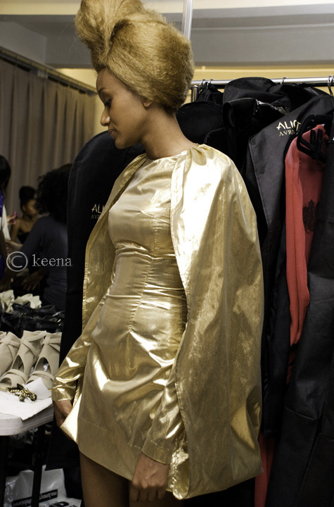 ALICAT Avril Lemieux featured her new designs, while incorporating a number of pieces by designer Nailah Lymus, this past Saturday during NY’s fashion week. It’s impressive to see where ALICAT’s come in just a year and a half. In February 2010 she featured her handbags in a runway show at a lounge in midtown. February 2011 found her again in a lounge but this time featuring a clothing line that coincided with her handbags in the West Village. Seven months later we find her at DANY studios showcasing 15 looks from “The Gods – Rise Of The Beetle Collection”. And just like her collection there’s nothing to stop her from rising. I’ve no doubt it’s just a matter of time before she’s dominating Lincoln Center. Here are a number of images I captured backstage and a few from her runway show: