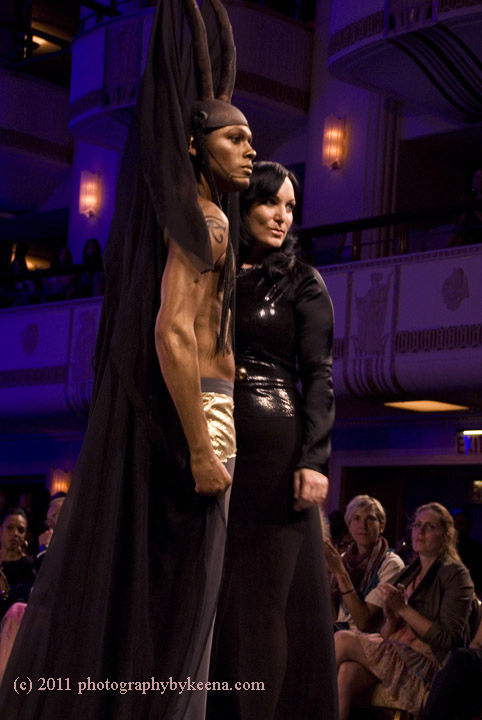 Less than a week after I’d posted on this blog that ALICAT Avril Lemieux was destined for Lincoln Center we found out that she’d been invited to show at New York’s Couture Fashion Week at the Waldorf Astoria. Okay – so it wasn’t Lincoln Center (yet – that’s next year) but DAMN! Couture Fashion Week?!!? This was definitely unexpected and I think the news left all of us on team ALICAT nervous and excited and well … all those things you’d expect to feel when you can see your hard work paying off. When I arrived at the Waldorf Astoria I found everyone working for the event to be courteous and well-organized. Immediately entering the Grand Ballroom I was shown how to access the backstage area where I’d find ALICAT and crew. Though things were moving at the usual faster than fast pace I managed to capture a few shots though I was really saving myself for the runway show. The lighting in the Grand Ballroom was, uh sigh, just unbelievable. I’ve tried to show in a few images the beauty and saturation of the colors though I don’t think my pictures do it justice. But I digress. First up on the runway was ALICAT Avril Lemieux From The Gods Rise Of The Beetle Collection followed by Romero Bryan who ended up closing Couture Fashion Week with his line. I wish I could say more about Romero’s collection but I don’t know much about it. Hopefully he’ll accept my friend request on FB so he can tell me more about his work.